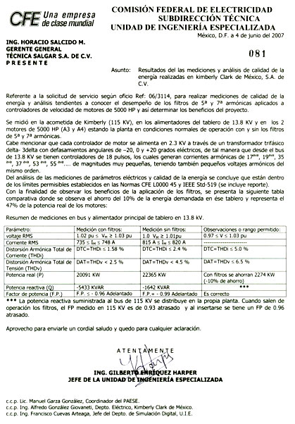 Filtros Instalados en 480 V instalados en áreas de refinería y fundición 13,420 KVAR totales.