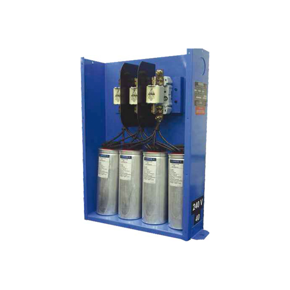 Los capacitores de potencia trifásicos con fusibles están fabricados con filme de polipropileno metalizado auto-regenerativo y cuentan con un dispositivo de seguridad contra alta presión interna. Presentan bajas pérdidas dieléctricas (< 0,4 W/kVAr) y están diseñados para compensar energía reactiva en motores o máquinas, con capacidades de hasta 300 kVAR en 240 V y 1000 kVAR en 480 V.