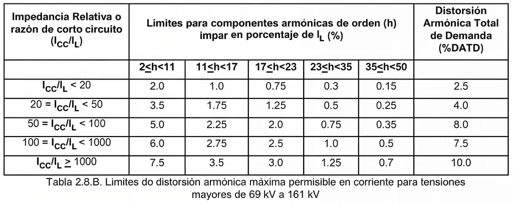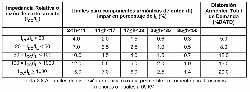 A partir de los estándares de la Ref: IEEE-519-2014, se establece: